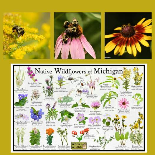 Michigan is home to hundreds of native bee species, plus butterflies and other pollinators. Native plants help support the entire ecosystem.